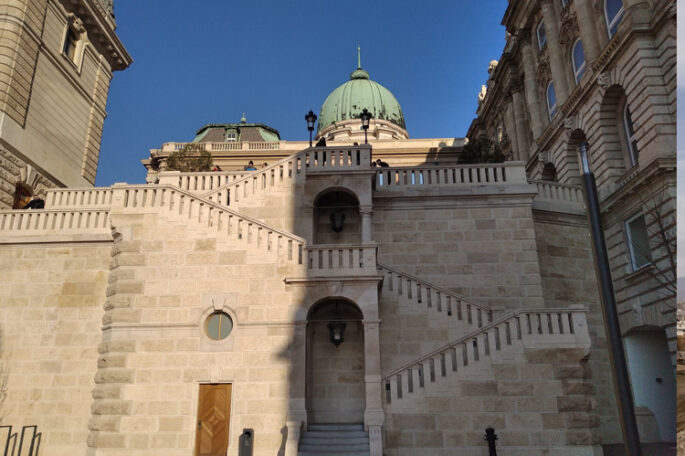 Megrendelő: WEST HUNGÁRIA BAU Építőipari Sz. Kft- LAKI Épületszobrász ZRT - Csikós udvarban a Főőrség épületének és a Stöckl-lépcső újraépítése eredeti helyén belső felületképzések